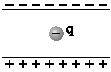 ذرهای با بار $ - q$ میان صفحات خازن شارژ شدهای با دیالکتریک هوا که از مولد جدا شده است، در حال تعادل است. اگر فاصلۀ صفحات اندکی افزایش یابد، کدام گزینه درست است؟