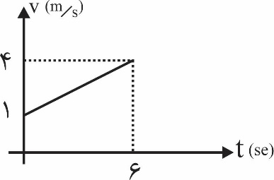 جسمی به جرم$m=۵kg$ روی سطح افقی قرار گرفته است. اگر نمودار سرعت-زمان حرکت جسم به صورت شکل زیر باشد و کار اصطکاک بین جسم و سطح $۲/۵J$ باشد. کار نیروی $F$ در $۶$ ثانیه چند متر بر ثانیه میباشد؟$(g=۱۰(\frac{m}{s^{۲}}))$
