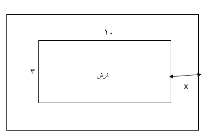 یک فرش به شکل مستطیل به ابعاد ۱۰متر و ۳متر در وسط یک اتاق طوری پهن میشود که لبهی فرش از هر ۴ طرف با دیوار فاصلهی یکسان داشته باشد. اگر مساحت قسمتهایی از زمین که فرش نشده است برابر ۱۴مترمربع باشد فاصلهی لبهی فرش تا دیوار چقدر است؟