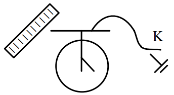 در شکل مقابل اگر در حضور میله کلید را وصل و سپس قطع کنیم، ورقههای الکتروسکوپ ......... و اگر میله را دور کنیم ورقهها ......... و اگر در این وضعیت یک میلة خنثی به کلاهک الکتروسکوپ نزدیک کنیم ورقهها .........