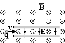ب) اگر \[v > \frac{E}{B}\] باشد، جهت حرکت ذره به صورت است.
