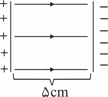 ذرهای با بار $-۲\text{ }\!\!\mu\!\!\text{ }c$ و جرم $۱۶mg$ را با سرعت $۵\frac{m}{s}$ از مجاورت صفحه مثبت به سمت صفحه منفی پرتاب میکنیم. اگر میدان الکتریکی بین دو صفحه ${{۱۰}^{۴}}\frac{N}{c}$ باشد، در فاصله چند سانتی متری صفحه منفی تندی ذره به صفر میرسد؟ (از نیروی وزن صرف نظر کنید)