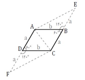 مطابق شکل، در متوازی الاضلاع ABCD، که زاویۀ حادۀ آن $۶۰$ درجه و طول اضلاع آن $\sqrt{۳}$ و $۲$ است، اضلاع کوچک را به اندازۀ خود امتداد دادهایم. مساحت چهارضلعی حاصل کدام است؟