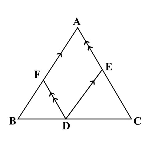 در شکل مقابل ، ABC مثلث متساوی الاضلاع به مساحت ۳۶ سانتی متر مربع است و F نقطعه ای روی AB است به متممی که $DF\text{و}DE\text{و}AF=۲FB$ به ترتی