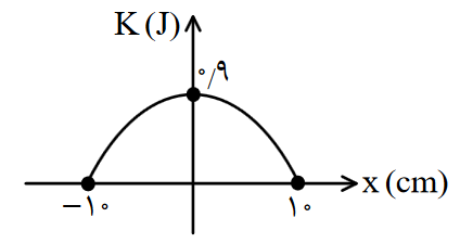 نمودار انرژی جنبشی نوسانگر هماهنگ سادهای به جرم \[200\,g\] برحسب مکان داده شده است، این نوسانگر در هر دقیقه چند بار طول پارهخط مسیر را طی میکند؟ \[(\pi = 3)\]