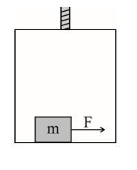 در شکل مقابل جسم \[2\,kg\] روی کف آسانسور قرار دارد و آسانسور با شتاب \[2\frac{m}{{{s^2}}}\] به سمت بالا شروع به حرکت میکند. اگر جسم در آستانة لغزش روی سطح آسانسور باشد، تغییر طول فنر چند cm است؟ (ضریب اصطکاک جسم با کف آسانسور \[{\mu _s} = {0_/}5\] و \[g = 10\frac{m}{{{s^2}}}\] و ثابت فنر \[k = 400\frac{N}{m}\] است.)