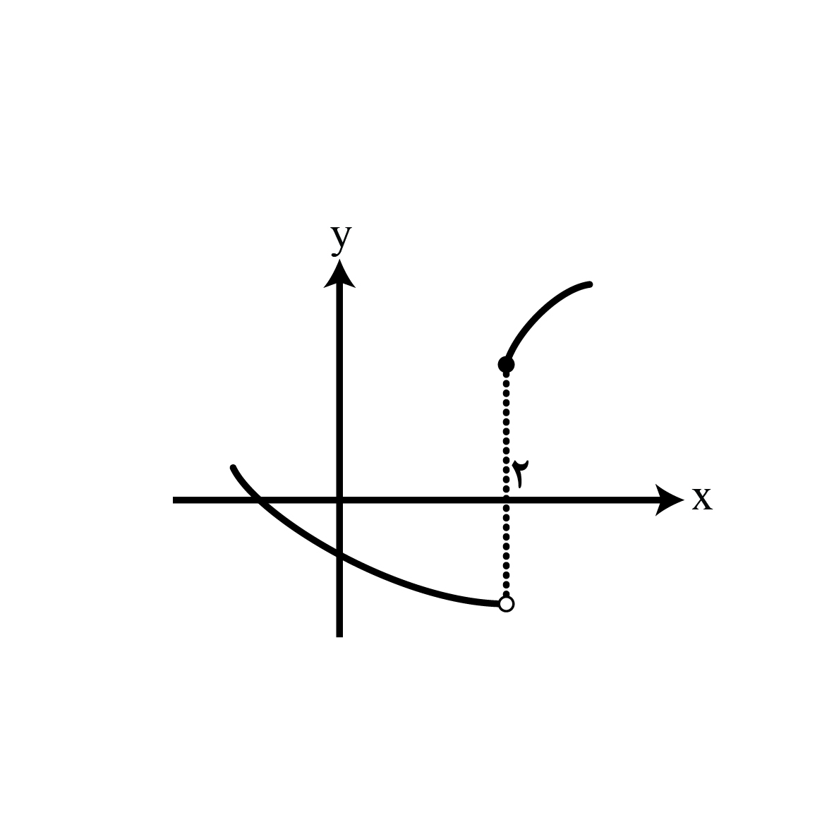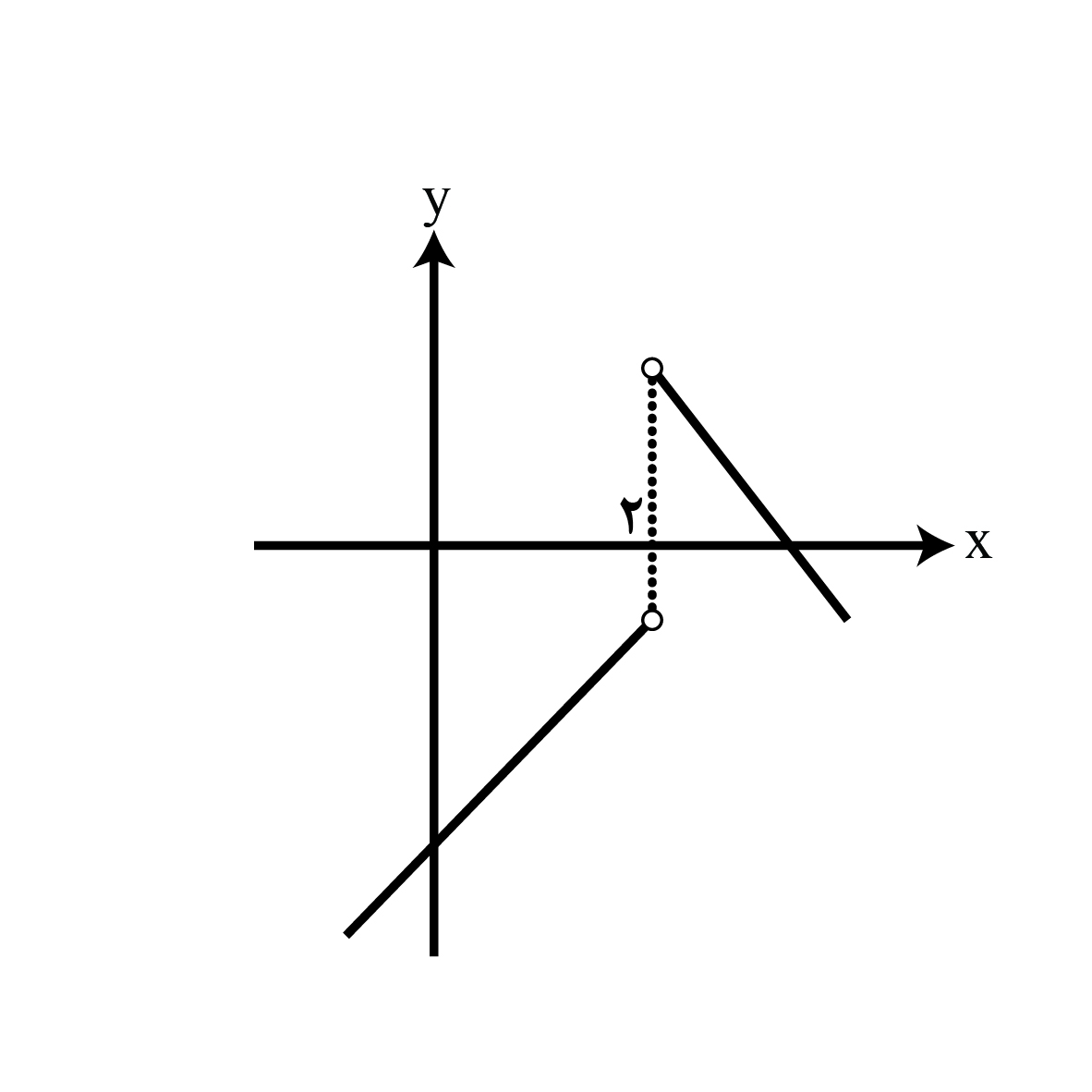 نمودار تابع f به صورت مقابل است. در نقطهای با کدام طول، حد راست تابع \[[\,f\,]\] از حد چپ آن در این نقطه کمتر است؟