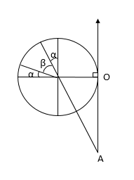 در دایره مثلثاتی شکل مقابل OA=$۲/۴$ است. مقدار $cos\beta $ چقدر است؟