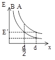 نمودار میدان برحسب فاصلة دو ذرة باردار A و B به صورت زیر میباشد. بار B چند برابر بار A است؟