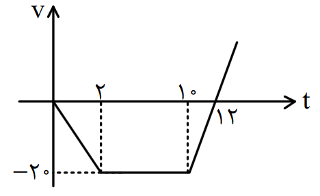 شکل مقابل نمودار مکان – زمان دو متحرک \[A\] و \[B\] که روی خط راست حرکت می کنند را نشان می دهد ، در لحظه ای که بردار مکان متحرک \[B\] تغییر جهت می دهد ، فاصله دو متحرک از یکدیگر چند متر است ؟