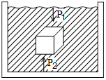 مطابق شکل، یک جعبه مکعب شکل به ارتفاع ${2_/}5$ متر درون شارهای به چگالی $3\,\frac{g}{{c{m^3}}}$ غوطهور است. اگر فشار وارد بر سطح بالایی جعبه برابر $4 \times {10^4}$ پاسکال باشد، فشار وارد بر سطح پایینی جعبه چند پاسکال است؟ $(g = 10\,\frac{m}{{{s^2}}})$