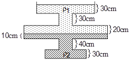 در شکل زیر، ${\rho _1} = {0_/}8\,\frac{g}{{c{m^3}}}$ و ${\rho _2} = {1_/}2\,\frac{g}{{c{m^3}}}$ و مایعها در حال تعادل هستند؛ اگر فشار هوا ${10^5}\,Pa$ و مساحت مقطع قسمتهای مختلف مخزن بهترتیب $4\,{m^2}$، $1\,{m^2}$، $6\,{m^2}$ و $3\,{m^2}$ باشد، فشار در کف ظرف مخزن چند کیلوپاسکال است؟ $(g = 10\,\frac{m}{{{s^2}}})$