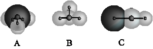 ج) مولکولهای A و B چهار اتمی بوده و برخلاف ساختار C برای مولکولهای 4 اتمی نمیتوان ساختار خطی در نظر گرفت.