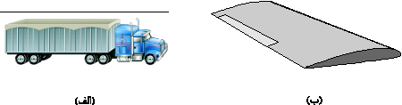 در شکل (الف) جریان تندباد در قسمت ......... بال بوده و در شکل (ب) اگر کامیون به راه بیفتد پوشش برزنتی صاف و تخت کامیون .........