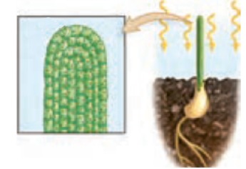 ب) رشد طولی تمام یاخته های این گیاه، به دلیل تابش نور همه جانبه به یک میزان است.