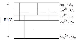 \[E^\circ \,(A{g^ + }/\,Ag) = {0_/}8\,V\,\,,\,\,E^\circ \,(C{u^{2 + }}/Cu) = {0_/}34\,V\,\,,\,\,E^\circ \,(M{g^{2 + }}/Mg) = - {2_/}37\,V\]