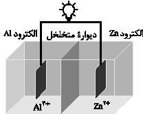 با توجه به شکل زیر که نشاندهندۀ سلول گالوانی \[Al - Zn\] (آلومینیم ـ روی) میباشد، به ترتیب جهت حرکت الکترونها در مدار بیرونی، جهت حرکت آنیونها و جهت حرکت کاتیونها چگونه است؟ (از راست به چپ)