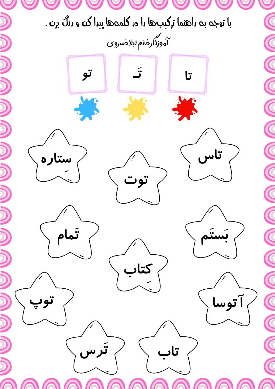 کاربرگ نشانهی ت - درس چهارم فارسی اول ابتدایی