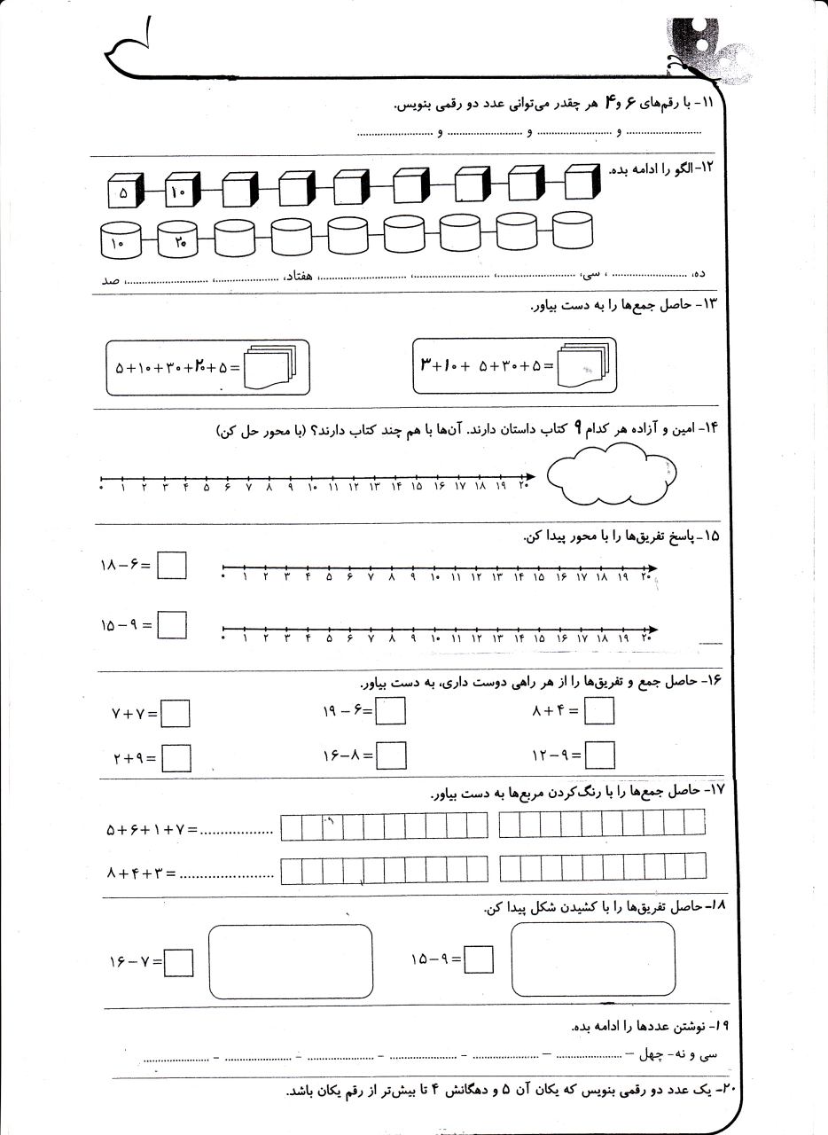 آزمون فصل اول ریاضی پایهی دوم دبستان