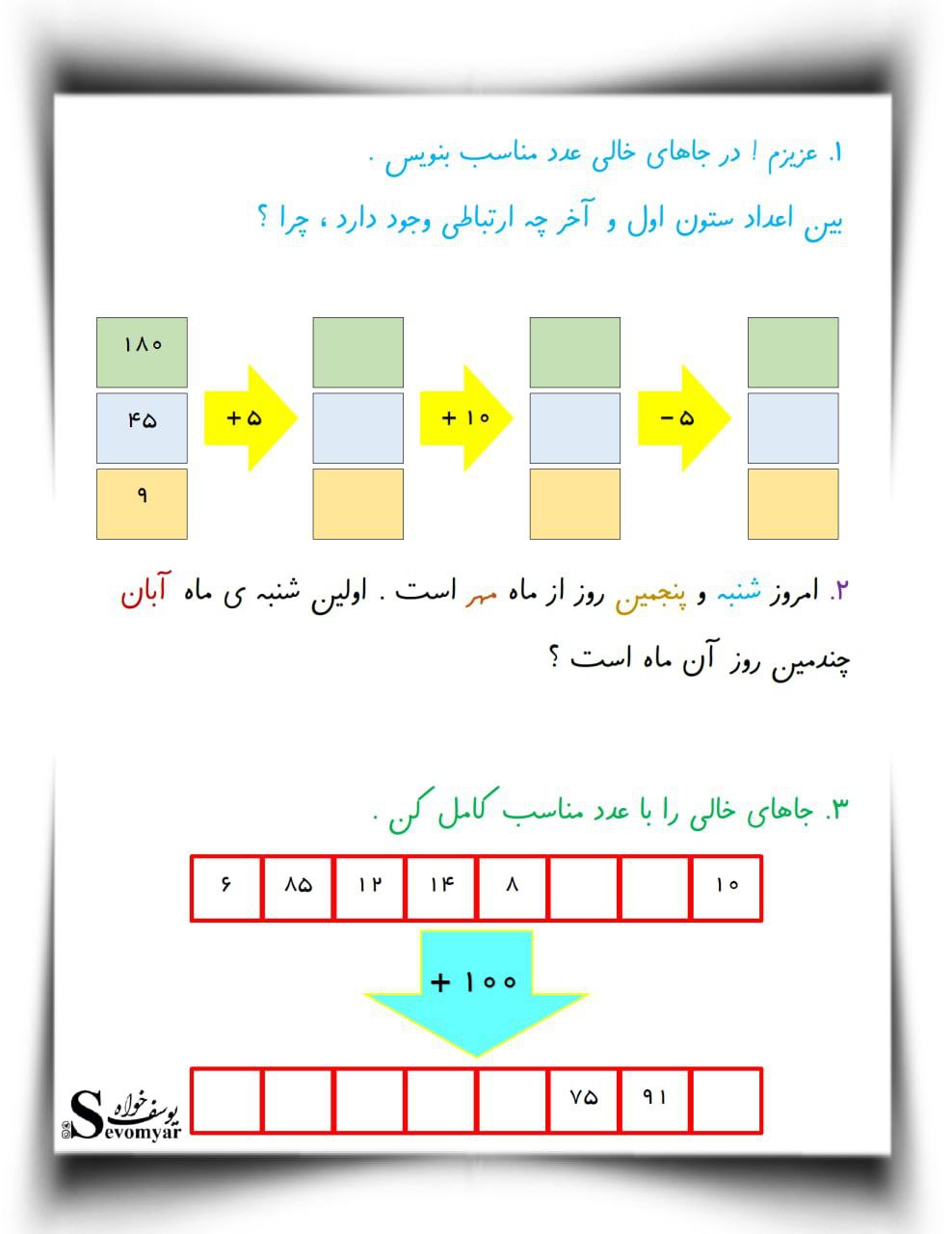 کاربرگ مبحث ماشین ورودی و خروجی از فصل اول ریاضی سوم ابتدایی