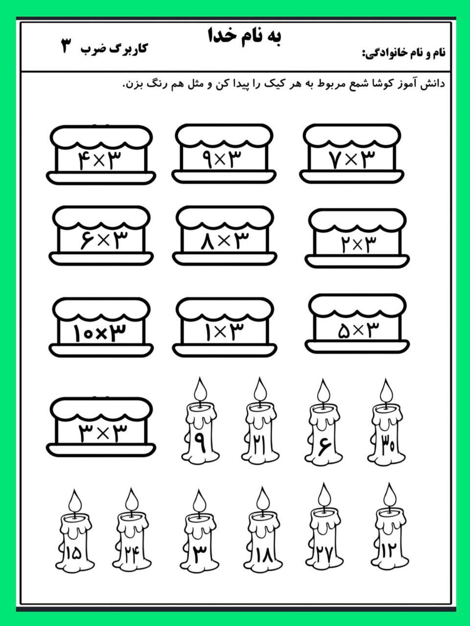 کاربرگ ضرب فصل چهارم ریاضی سوم ابتدایی