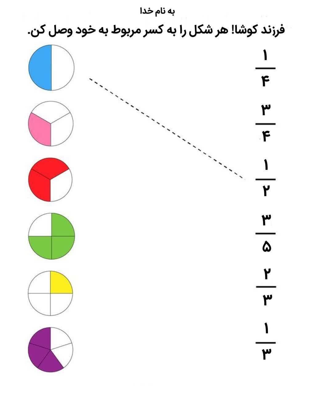 کاربرگ تمرینی مبحث کسر از فصل سوم ریاضی سوم ابتدایی