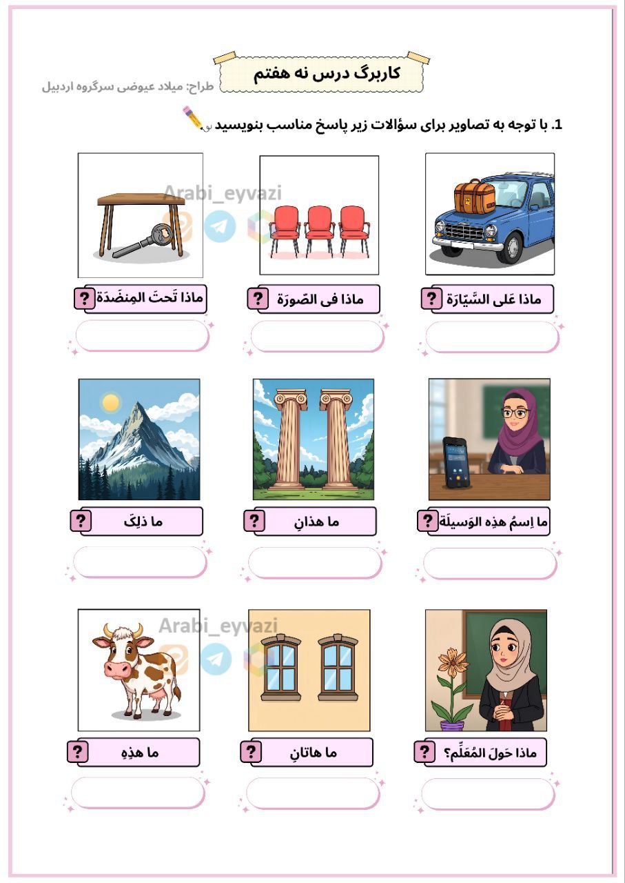 دیگر نمونه سوالهای الدَّرْسُ التّاسِعُ عربی هفتم