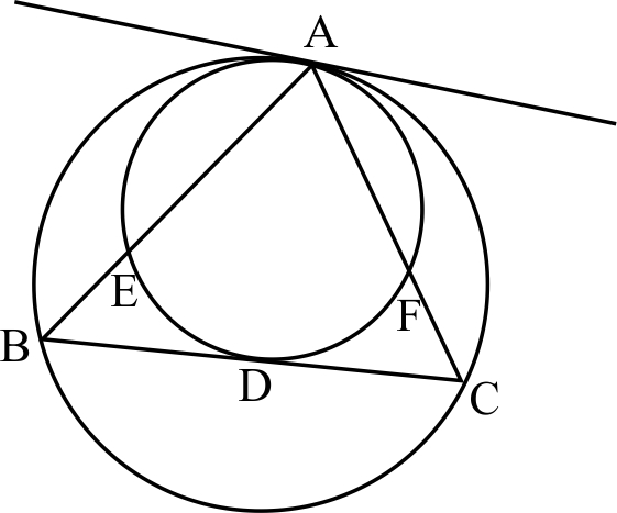 در شکل زیر$\hat{ED}=۵۰^{\circ},\hat{AF}=۷۰^{\circ}$   اندازه زاویه  $BAC$چند درجه است؟