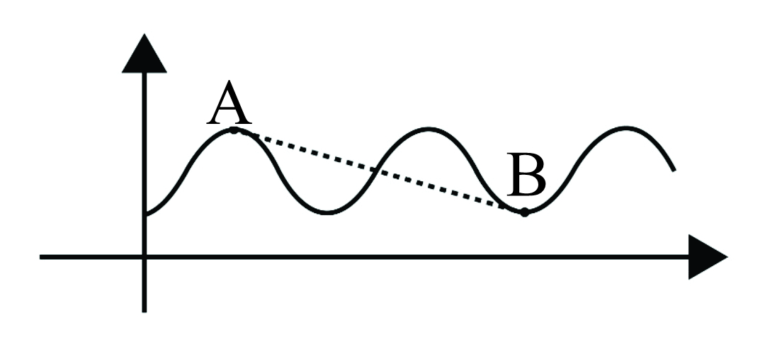 نمودار تابع $y=۳-۲\cos \frac{x}{۲}$ به صورت مقابل است. شیب پاره خط AB کدام است؟