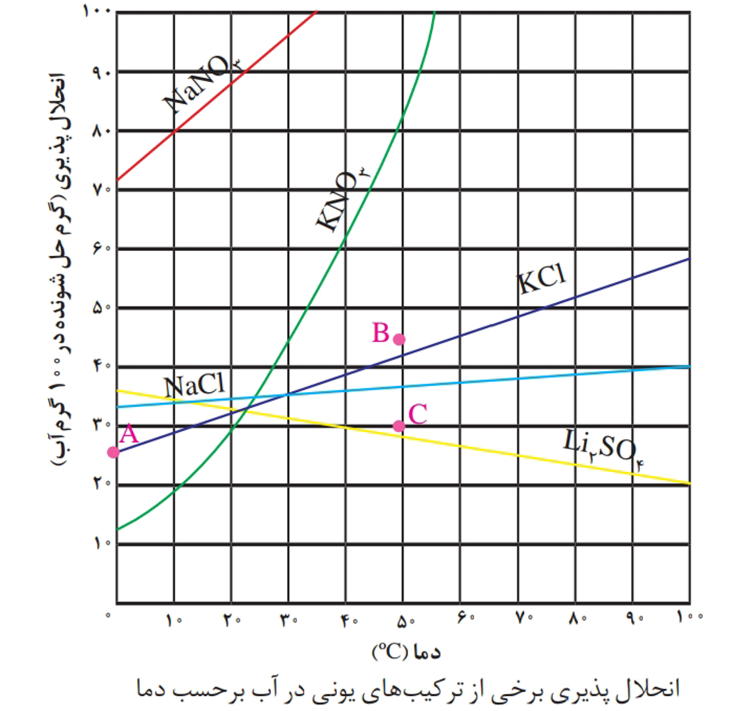 - هگزان در آب: هگزان یک هیدروکربن غیرقطبی است و در آب که قطبی است، حل نمیشود. بنابراین، هگزان در آب محلول نیست.