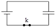 وقتی خازن از باتری جدا شده است، بار روی صفحات آن ثابت میماند. انرژی اولیه خازن با رابطه $E = \frac{1}{2} \frac{Q^2}{C}$ داده میشود.