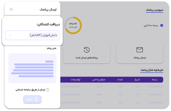 Taraz messaging and notification system allows schools to easily communicate with students and their parents using modern communication methods. One of the advantages of using the Taraz system is the ability to send a large number of SMS at the same time.