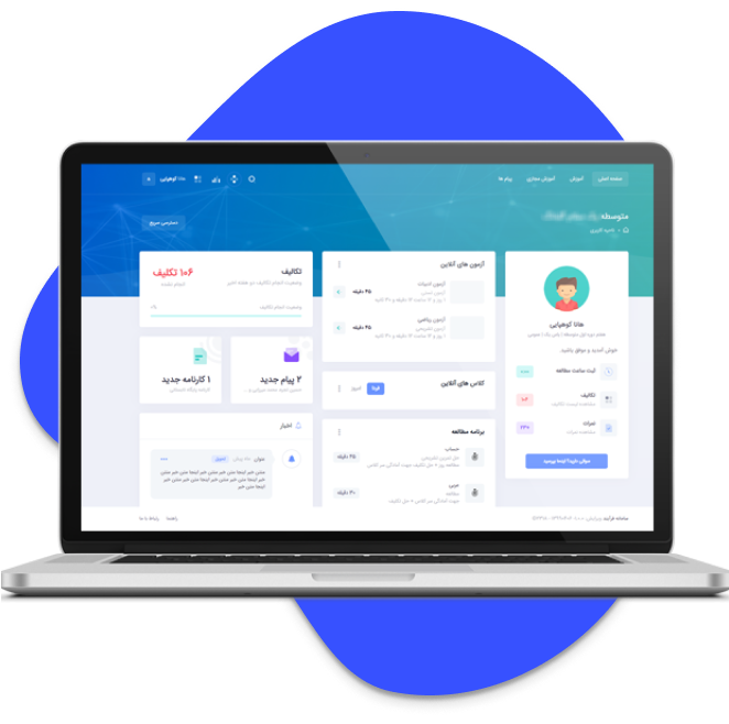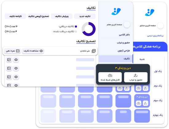 بیشتر بخوانیددر این سامانه معلم میتواند کلیهی امور مربوط به دانشآموزان مانند نمرات، حضور و غیاب، امور انضباطی، انجام تکالیف و اجرای برنامهی مطالعاتی را به صورت یکپارچه ثبت، مشاهده، ارسال و بهراحتی پیگیری کند. اطلاعرسانی به والدین و ثبت برنامهی هفتگی و کلاسهای آنلاین مدرسه از دیگر امکانات این سامانه هستند.