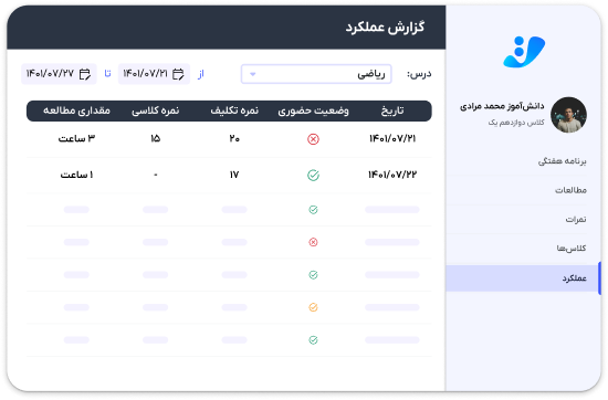 ثبت نمرات بهصورت هفتگی و ماهیانه و صدور کارنامه